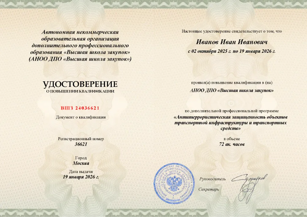 Профессиональная переподготовка, 250 академических часов, 6 модулей: нормативно-правовое регулирование и угрозы терроризма, функциональные обязанности ответственных лиц, основы безопасности и охраны объектов, анализ уязвимости и разработка необходимой документации. Онлайн-обучение в в Красноярске с итоговой аттестацией.