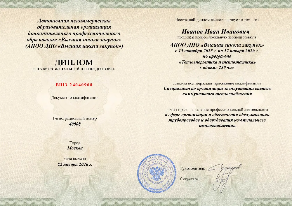 Программа профессиональной переподготовки (250 часов) для специалистов по теплоэнергетике в в Красноярске. Освойте теоретические основы, техническую эксплуатацию и безопасность тепловых энергоустановок, правила охраны труда, пожарной безопасности и аналитику надежности объектов.