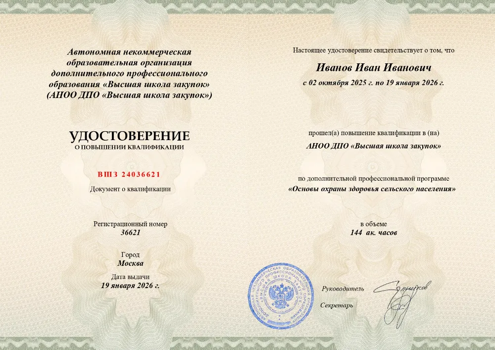 Курс повышения квалификации (144 часа) по основам охраны здоровья в сельской местности. Изучите правовые, организационные и экономические аспекты сельского здравоохранения, санитарно-эпидемиологическое обеспечение и управление качеством медицинской помощи. Онлайн-обучение в в Красноярске с итоговой аттестацией.